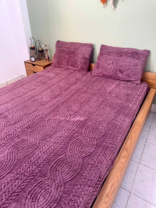 روتختی دونفره سه تکه رنگ کالباسی (یک عدد کاور تشک و دو عدد روبالشتی)