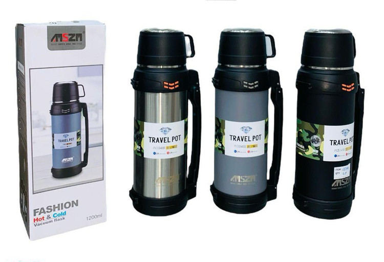 قمقمه استیل مسافرتی دسته دار گرم و سرد ۱۲۰۰ میل