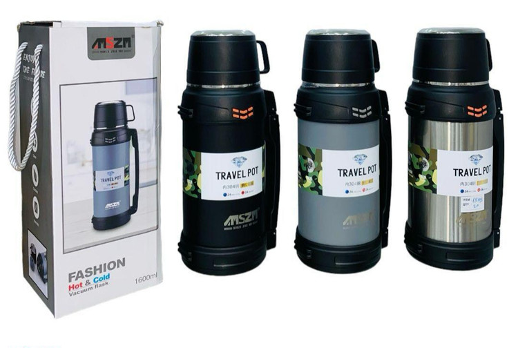 قمقمه استیل مسافرتی دسته دار گرم و سرد ۱۶۰۰ میل مارک AMSZM